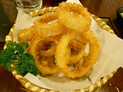 オニオンリングもカラッと揚がって玉葱がしっかりしてそうですね。