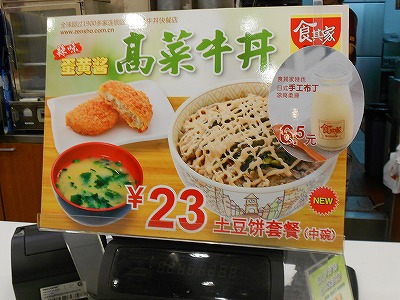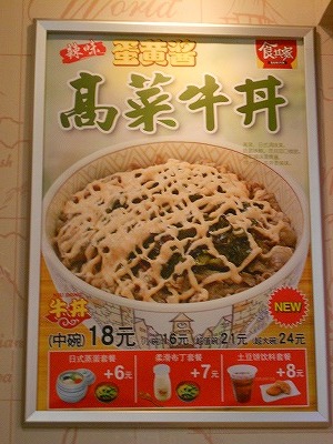 日本だと「高菜明太マヨ牛丼」というのがありましたが、上海版は明太子が入っていません。