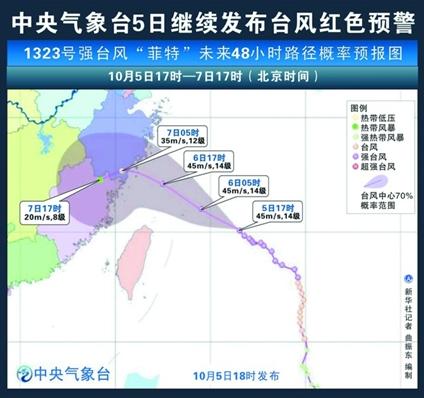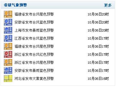 今のところ暴風警報ですが(10月6日22時現在)、浙江省などは台風警報(赤色)が出ています。