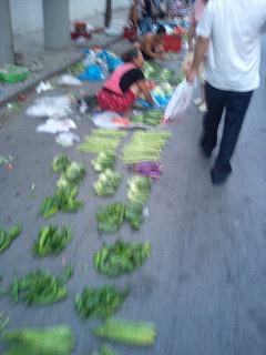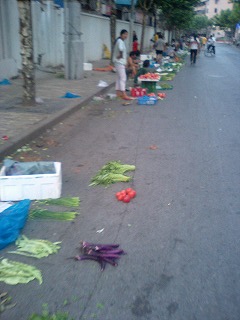 道の端に野菜の市場があります。