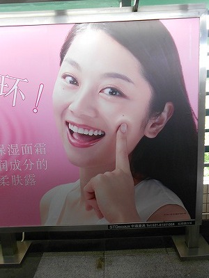 上海地下鉄・某地上駅のホームにあったこの広告。