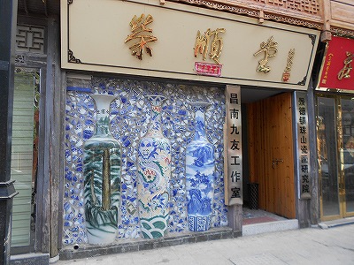 お店の壁に巨大な陶器が埋め込まれていたり、