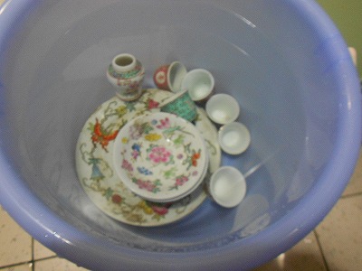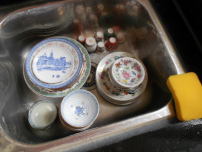 そして洗ったお皿を、漂白剤を入れた水の中にもう一日漬けます。