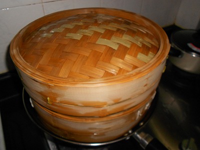 下の中華なべでお湯を沸かして蒸します。
