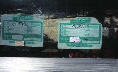 「PANCAKE(パンケーキ)」と書かれた商品の英語表示には「65元(約1062円)」との価格が添えられている。明らかに漢字が読めない外国人を“カモ”にしようという「ぼったくり商売」だ。