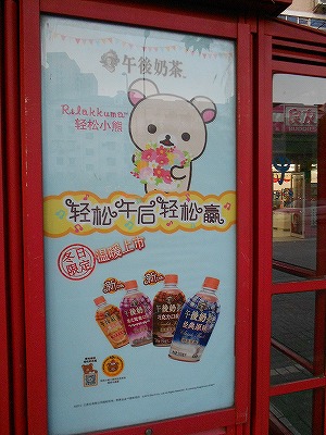 上海で売られている、キリンの午後の紅茶が「リラックマ」バージョンになっています。