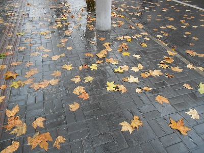 ここ数日の雨でプラタナスの葉が散っています。