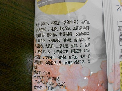 虾(エビ)7%、龙虾原味調味料、あと龙虾粉ってのも入っています。