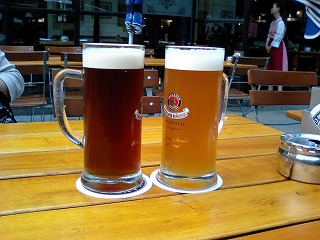 昼のビアガーデンで飲む自家製ビールはとてもおいしかったです。