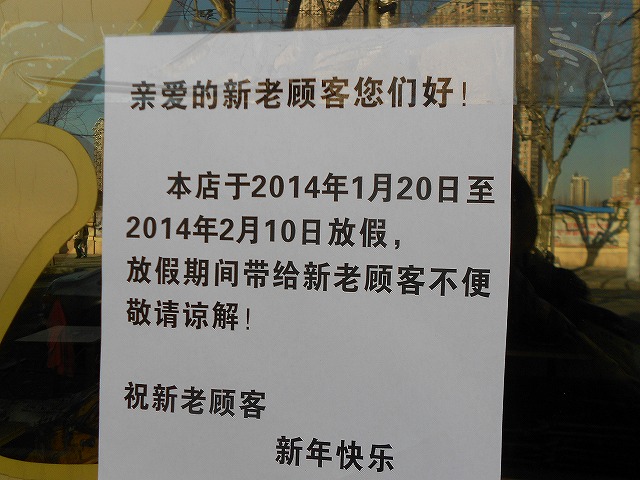 上海は地方から来ている人も多いので(特に客商売)、閉まっているお店も多いです。