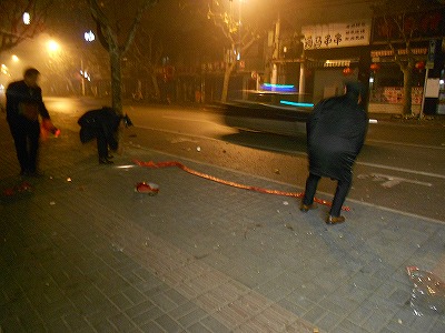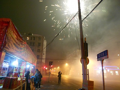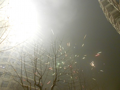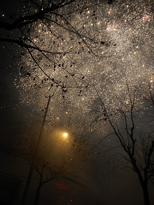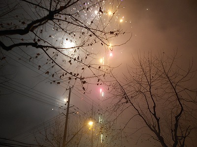 大晦日から元日にかけて行われるのが爆竹、花火。