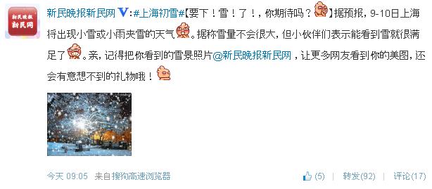 ↑上海に雪が降ってきた、これから雪になると盛り上がっている中国版ツイッター「微博」。