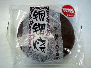 小麦粉・卵・砂糖を原料とした銅鑼形に焼いた皮2枚の間に粒餡を挟んだ和菓子。