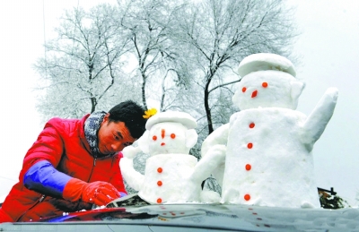 成都市の竜泉山では雪が降り、現地の住民は次々と雪だるまを作って20元-30元(約340円-510円)で観光客に販売した。