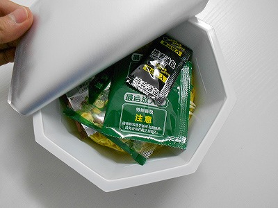 容器の上で小袋を温めます。