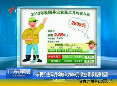 中国の人力資源社会保障省は20日の記者会見で、2013年に農業以外の産業で働く同国の農村出身者が前年比2.4%増の2億6900万人に上り、このうち他地域に出稼ぎをしている人が1億6600万人だったと発表した。
