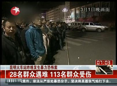 昆明市当局は2日、新疆ウイグル自治区の独立勢力による「組織的な重大暴力テロ」事件と断定した。