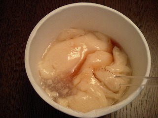 イチゴ味といってもイチゴシロップ(ジャム?)をかけるだけですが、これがおいしい。