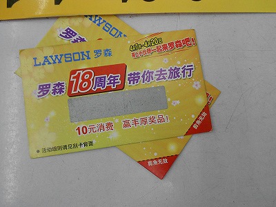 上海のローソン(羅森)が18周年ということで、10元以上買い物をするとクジがもらえます。