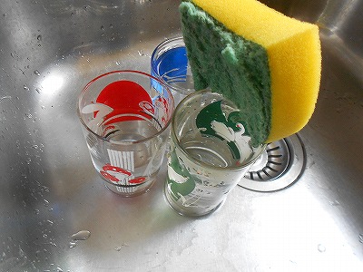 まずは鍋などを洗うスポンジで洗い、汚れを取ったら食器用のスポンジで洗う作戦。