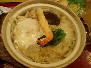 鍋焼きうどん、28元。