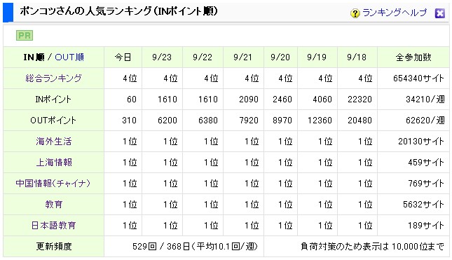 ちなみにそのときのとんでもないアクセスは、ブログ村のINポイントにも反映され、