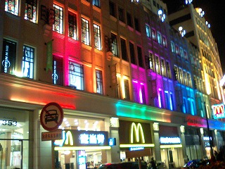 ↑南京東路近くのいかがわしい明かりのビル。