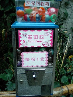 ↑ガチャガチャで魚の餌が売っていました。