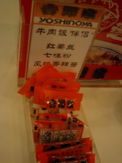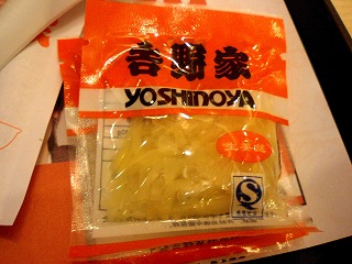 中国の吉野家は紅生姜を容器から取るのではなくて、袋詰めのものをもらうんですね。