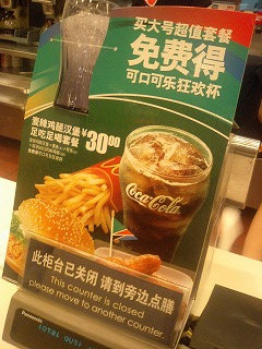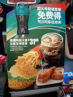 もしかするとグラスだけで買えるのかもしれませんが、時々ジャンクフードが食べたくなるのと、中国語能力がそこまでないもので。ポンコツですし。