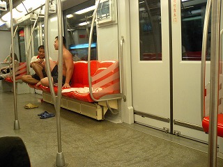 ↑席を占領している上半身裸の男。