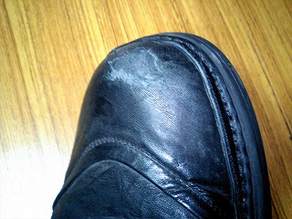 学校に着いて靴を拭いていたら、靴の先に三角の傷があることに気がつきました。