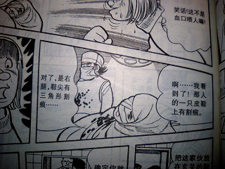 その犯人の決め手となるのが「靴の先の三角の傷」です。