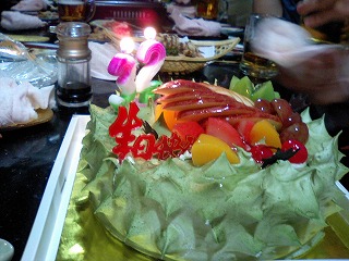 ケーキで祝っていただきました。