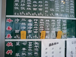 何か青椒肉絲冷面の下に札がある。