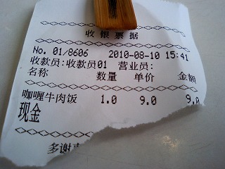 9元の咖哩牛肉飯。