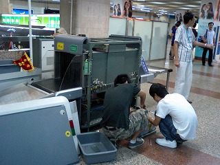 今上海の地下鉄はセキュリティチェックが厳しくて、荷物をX線の機械に通さないといけないのですが、故障中でした。