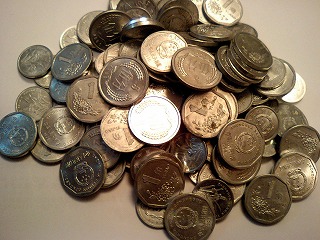 大きい1角硬貨や、材質の違う1角などが財布の中に残っていたら貯金箱に入れていました。
