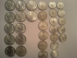 なんか1分(0.01元)が35000倍の350元になる、というようなことが書いてあるので、手持ちの硬貨を調べてみました。