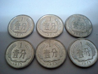 1分、2分、5分硬貨は現在の上海では流通していないと思いますが、以前住んでいた所が分の単位まできっちり払わなければいけないところだったので、結構持っていたはず。