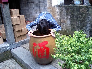 酒甕を覗くポンコツ男。
