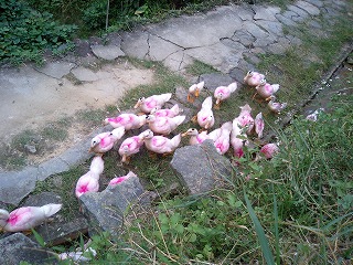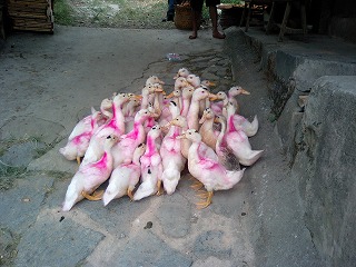 ある民家の入り口にアヒルがたくさんいました。