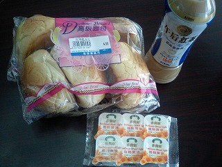 5個で4.5元の「高級面包」と、闇鍋の時に使わなかったマーガリン、午後の紅茶。