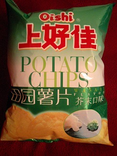 「Oishi」と言うメーカーのわさび味のポテトチップス。
