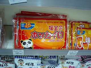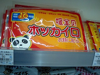 ローソン(羅森)のレジの下にホッカイロが売られていました。