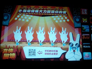 タクシーの後部座席にあるマルチメディア広告の春節特別企画のウサギが憎たらしいです。