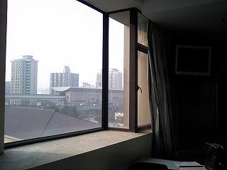 窓から赤峰路の駅が見える上海外国語大学構内よりお送りいたしております。