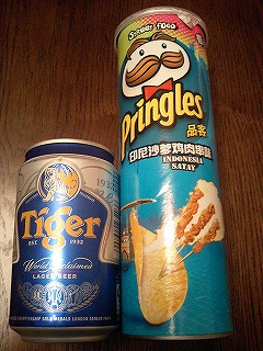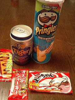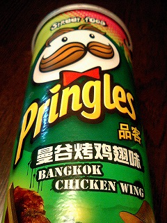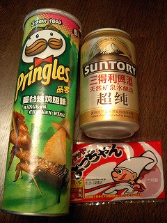 つまみはよっちゃんいかとプリングルス バンコク手羽先味。