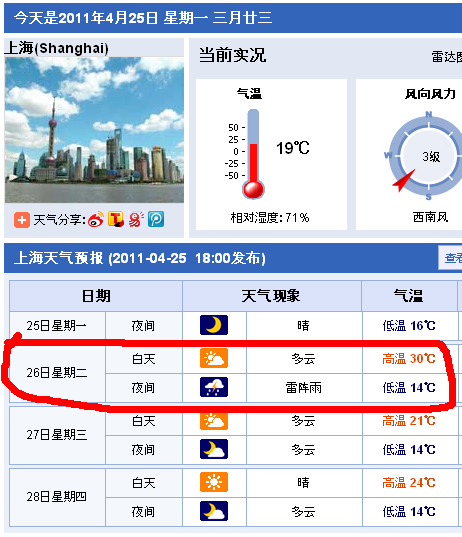 ↑明日(4月26日)の最高気温が30℃との予報が。