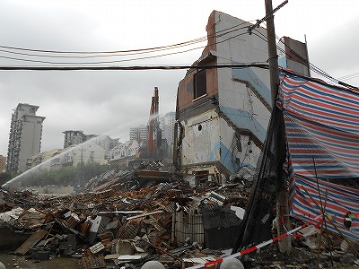 この建物の並びのお店は早々に撤去したので、立退きの期限ギリギリだったのかな、なんて思いました。